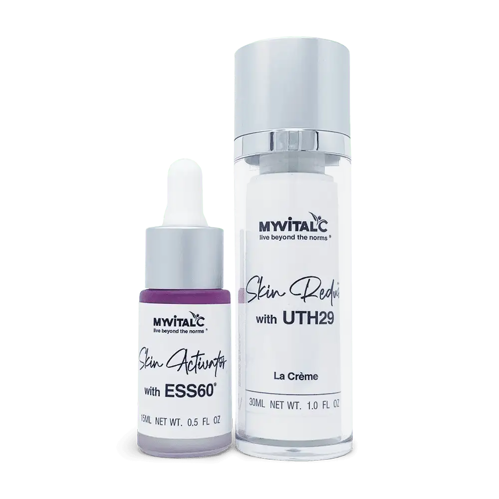 Puede usarse para todo tipo de piel[:es]1 oz de crema facial infundida MyVitalC UTH29 y 0.5 oz de activador de piel infundido ESS60*