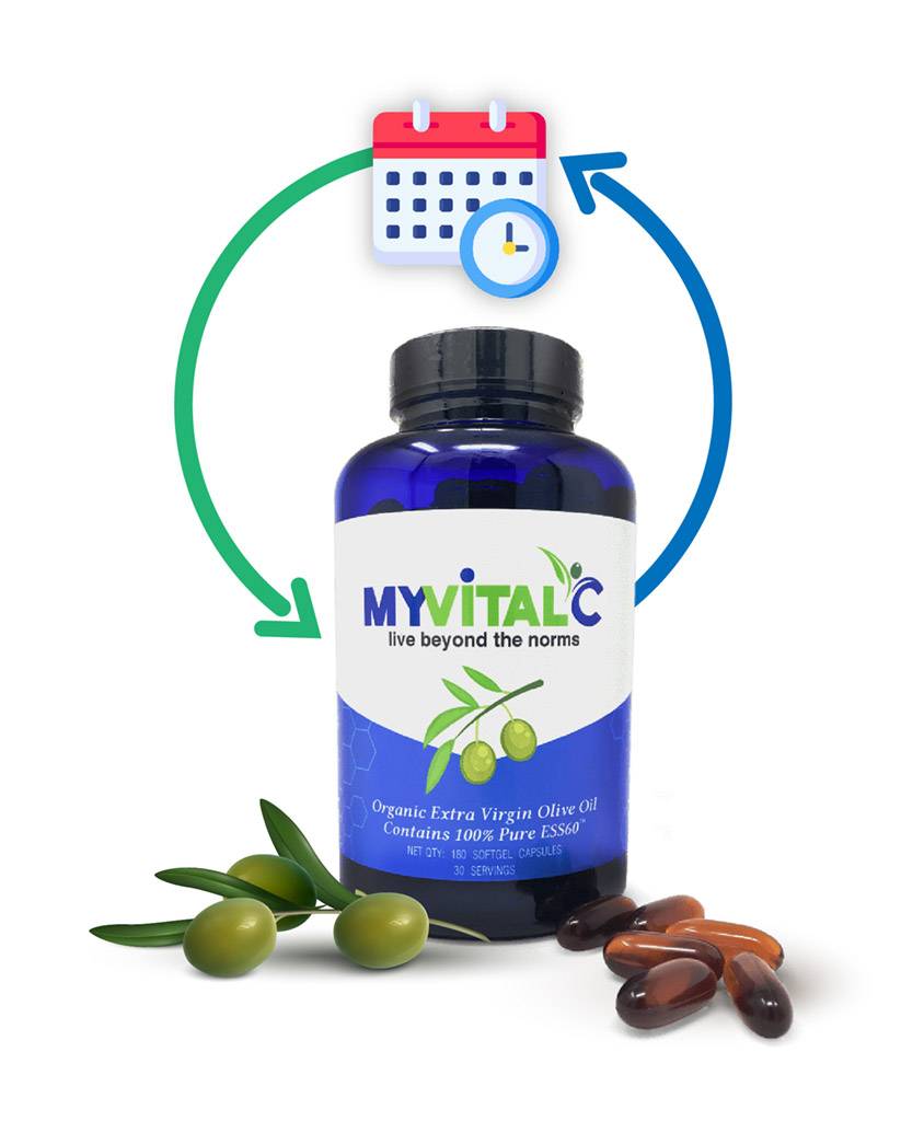 Recurring monthly subscription of 30 Day Supply of MyVitalC ESS60 in Olive oil - Softgel Capsules - Oral Supplement Total of 180 capsules - Daily Serving Size 6 Softgels
