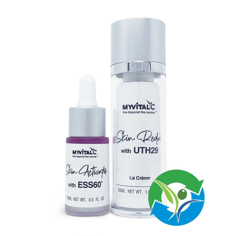 Damask Rose has long been used in beauty and aromatherapy. The activator moisturizes dehydrated skin and improves tone and texture, soothes irritation, and softens skin. UTH29® le crème plumps, renews and rejuvenates skin. Avoid chemical emulsifiers by using our 2 step system. Can be used for all skin types[:es]1 oz of MyVitalC UTH29 Infused Facial Cream & 0.5 oz of ESS60 Infused Skin Activator* *Best when used together. Mix La Creme & Activator in the palm of your hand and apply directly to face.